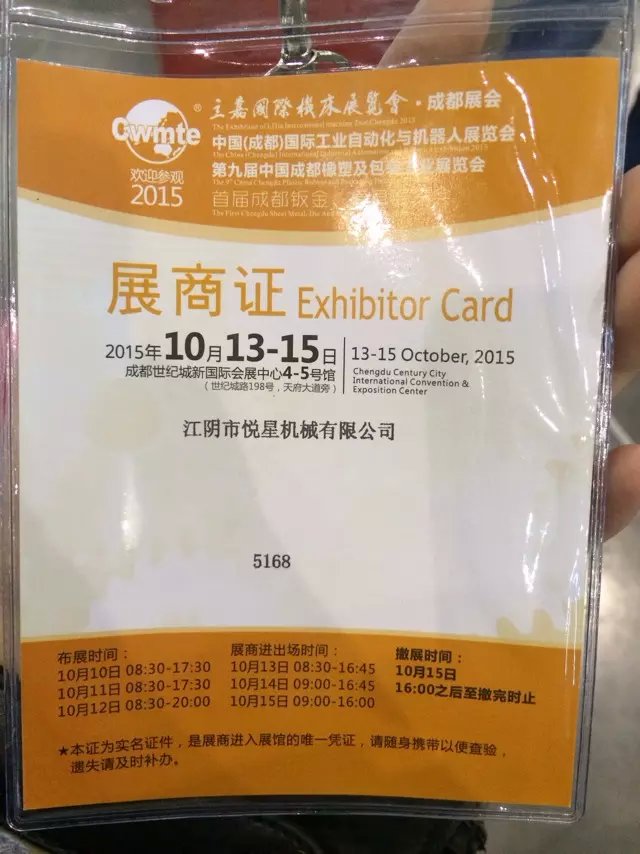 第九屆中國(guó)成都橡塑及包裝工業(yè)展覽會(huì),時(shí)間2015年10月13—15日,地址:成都世紀(jì)城新國(guó)際會(huì)展中心4-5號(hào)館(世紀(jì)城路198號(hào),天府大道旁)望新老顧客奔走告知,有興趣得朋友可以來(lái)展會(huì)試機(jī)。