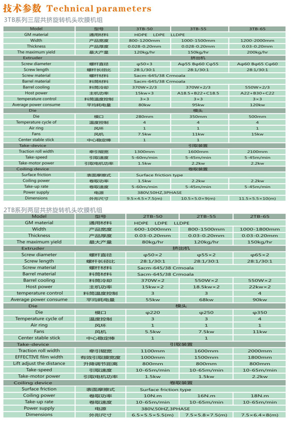機(jī)器特性 吹制各種規(guī)格的低密度聚乙烯、高密度聚乙烯和線性低密度聚乙烯塑料薄膜,廣泛應(yīng)用于食品百貨、日用、化工、針紡品、購(gòu)物禮袋和工業(yè)包裝。機(jī)筒、螺桿采用38CrMOAI合金材料經(jīng)氨化處理精密加工而成具有很好的耐磨和耐腐蝕性。 ...