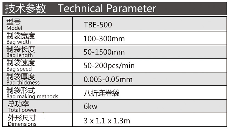 機(jī)器特性 此設(shè)備為生產(chǎn)連卷八折背心垃圾袋的專用設(shè)備,單通道高速無拉伸操作簡(jiǎn)便,底封好,收卷整齊,個(gè)數(shù)準(zhǔn)確,手動(dòng)手卷。此設(shè)備采用全鋼板一體而成,用電220v照明電即可。